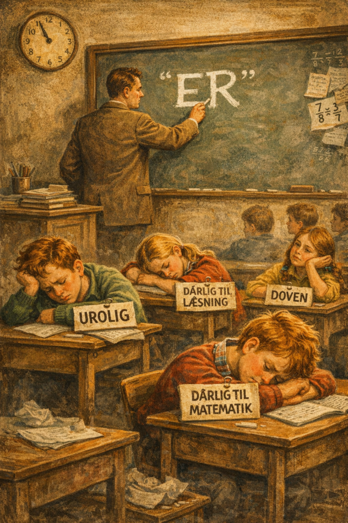 Når vi siger, at et barn er noget, gør vi en midlertidig adfærd til en identitet. Vi gør det flydende fast. Vi gør det foranderlige permanent. Og vi glemmer, at ingen mennesker er noget for evigt. Alle mennesker er i udvikling.